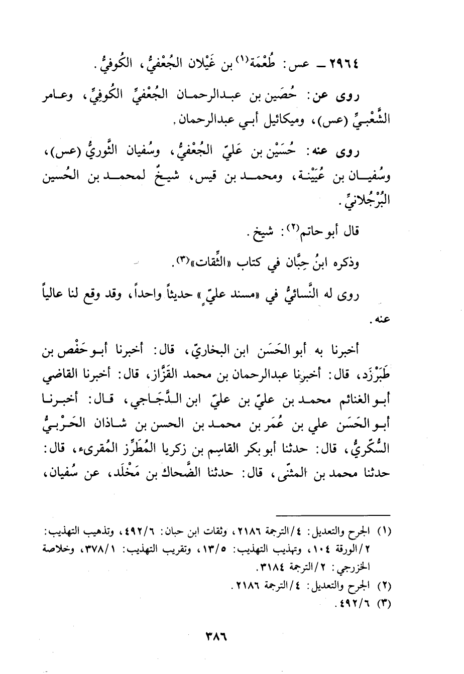 2964 - عس: طعمة بن غيلان الجعفي (1) ، الكوفي.