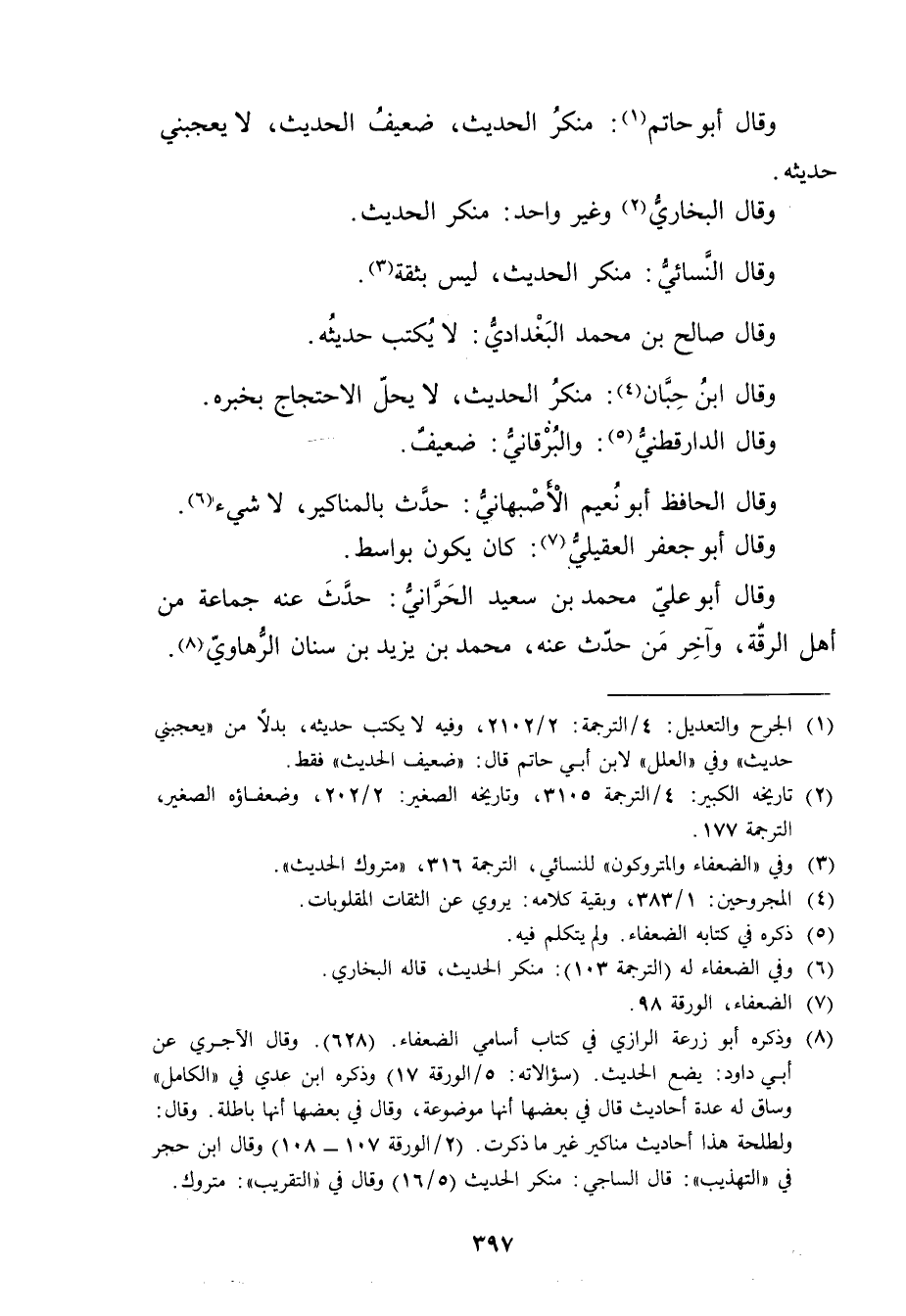 (8) وذكره أَبُو زُرْعَة الرازي فِي كتاب أسامي الضعفاء. (628) .