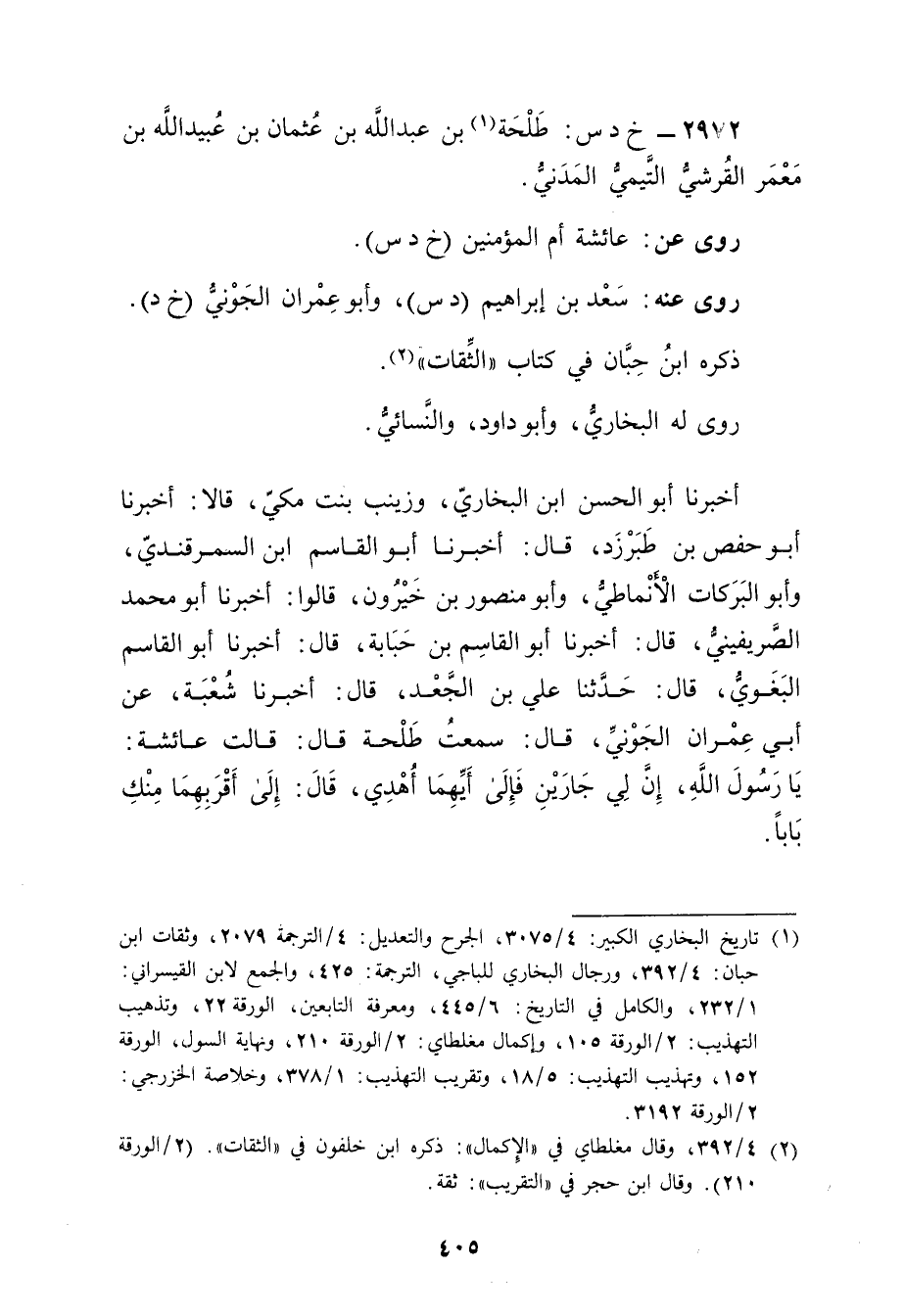 2972 - خ د س: طلحة بن عَبد اللَّهِ بْن عثمان بْن عُبَيد الله بن معمر القرشي التَّيْمِيّ المدني (1) .