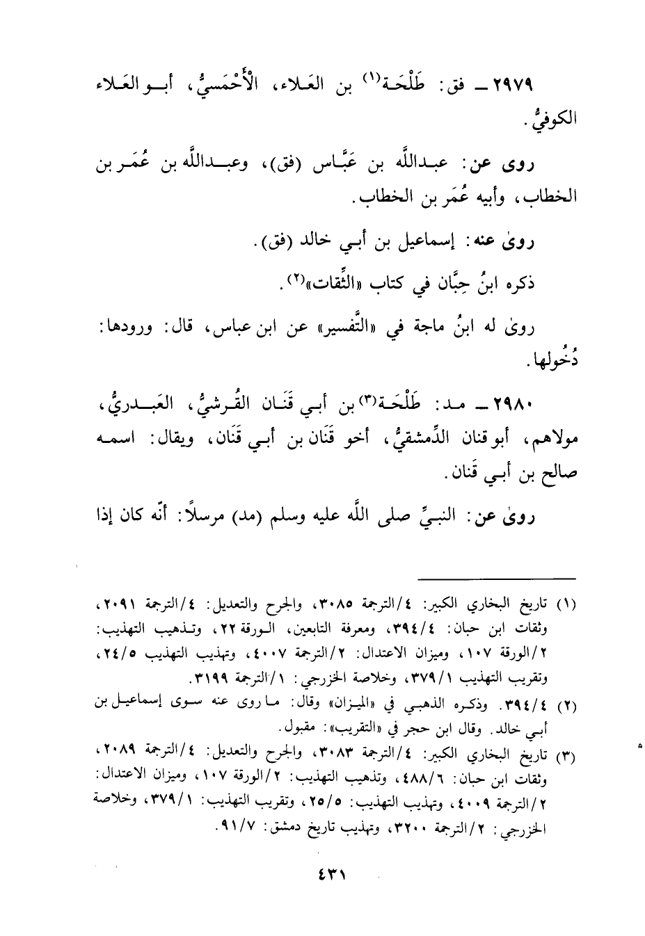 2979 - فق: طلحة بن العلاء (1) ، الأحمسي، أبو العلاء الْكُوفِيّ.