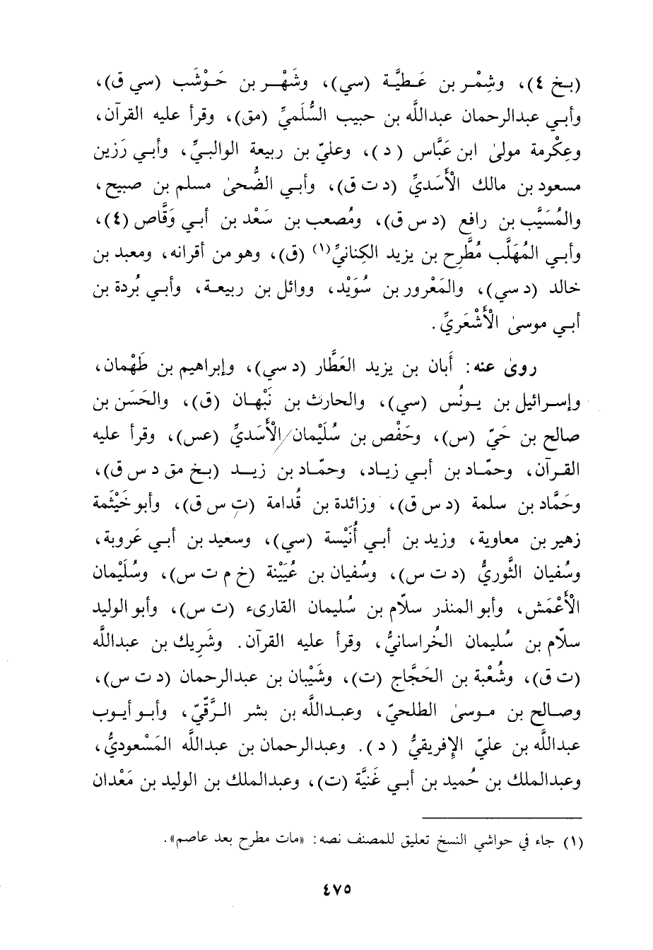 (1) جاء في حواشي النسخ تعليق للمصنف نصه: مات مطرح بعد عاصم".