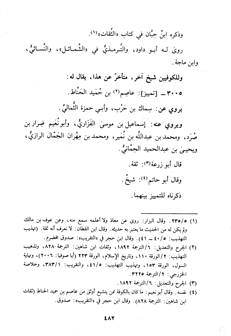 3005 - تمييز: عاصم بن حميد الحناط (2) .