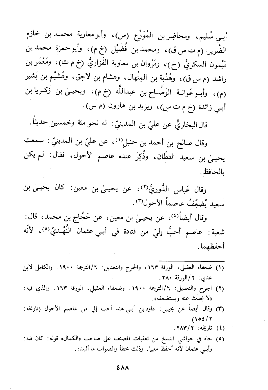 وَقَال عَباس الدُّورِيُّ (2) ، عَن يحيى بْن مَعِين: كان يحيى بْن سَعِيد يضعف عاصما الأحول (3) .