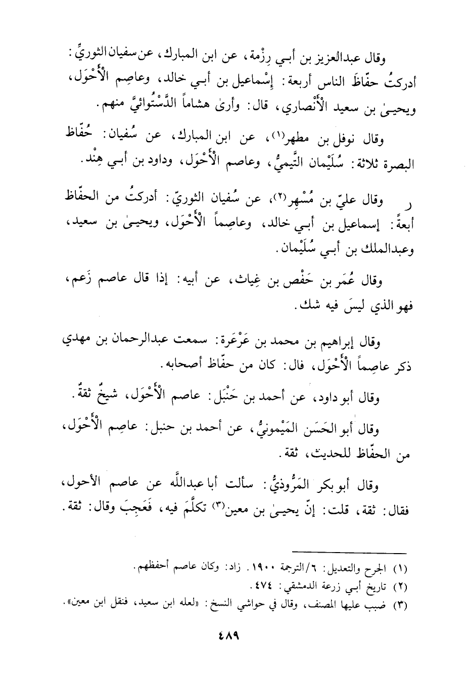 (1) الجرح والتعديل: 6 / الترجمة 1900. زاد: وكان عاصم أحفظهم.