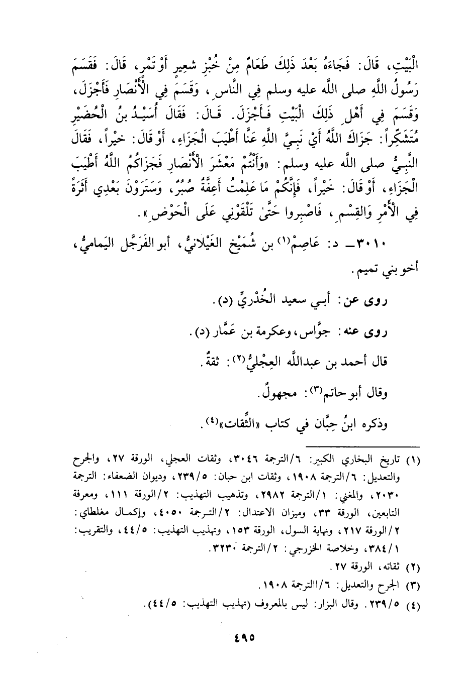 3010 - د: عاصم بن شميخ الغيلاني (1) ، أبو الفرجل اليمامي، أخو بني تميم.