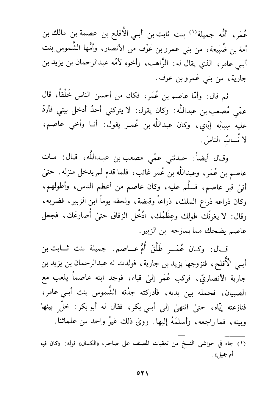 (1) جاء في حواشي النسخ من تعقبات المصنف على صاحب "الكمال" قوله: كان فيه أم جميل".