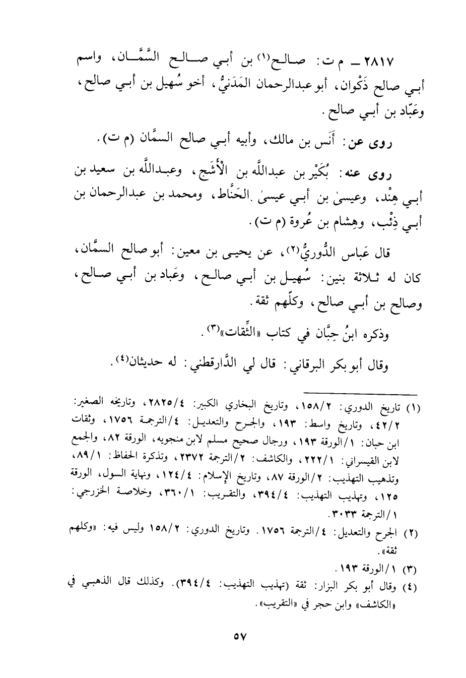 2817 - م ت: صالح بن أَبي صالح السمان (1) ، واسم أبي صالح ذكوان، أبو عبد الرحمن المدني، أخو سهيل بن أَبي صالح، وعباد بن أَبي صالح.