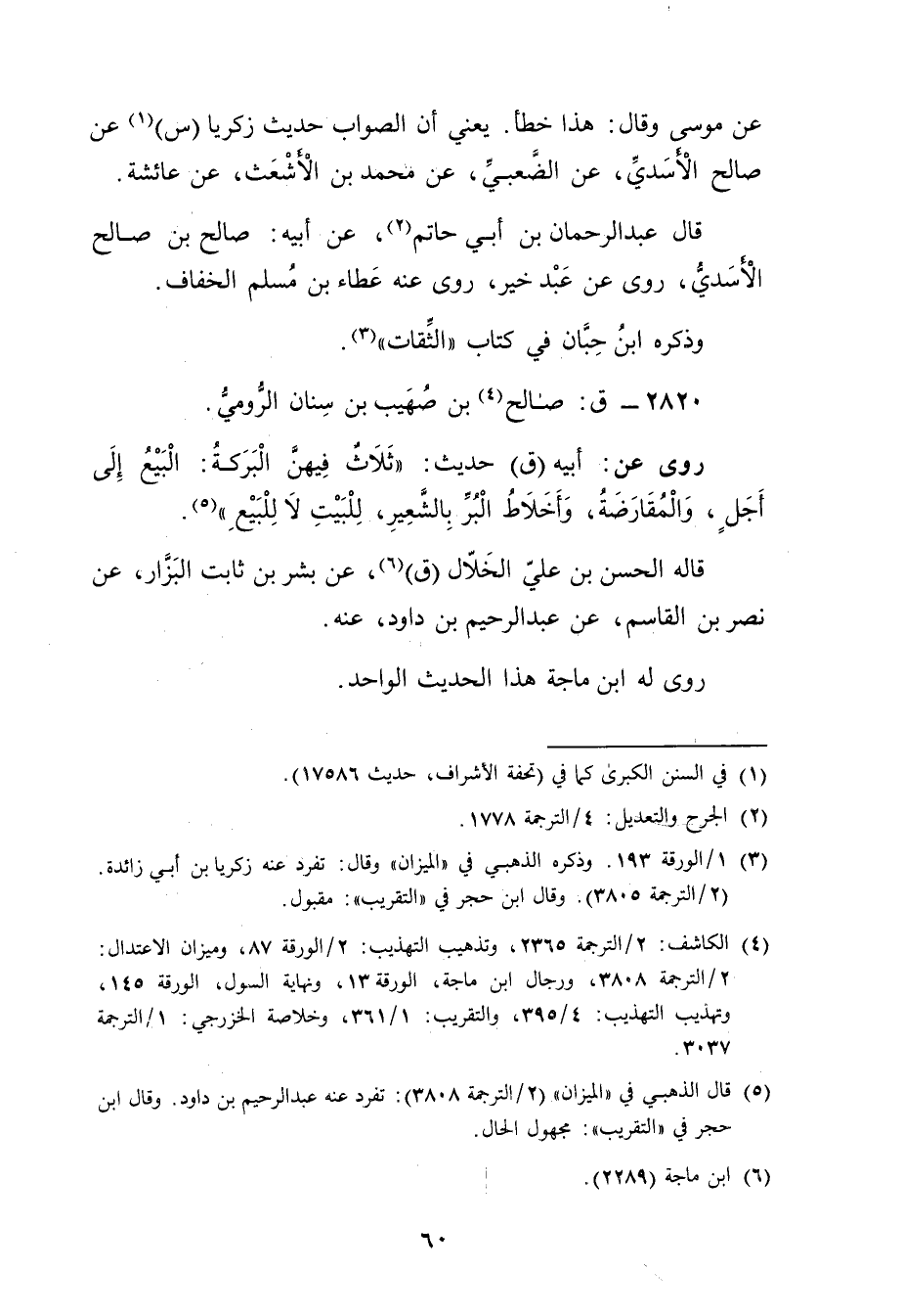 (4) الكاشف: 2 / الترجمة 2365، وتذهيب التهذيب: 2 / الورقة 87، وميزان الاعتدال: 2 / الترجمة 3808، ورجال ابن ماجة، الورقة 13، ونهاية السول، الورقة 145، وتهذيب التهذيب: 4 / 395، والتقريب: 1 / 361، وخلاصة الخزرجي 1 / الترجمة 3037.