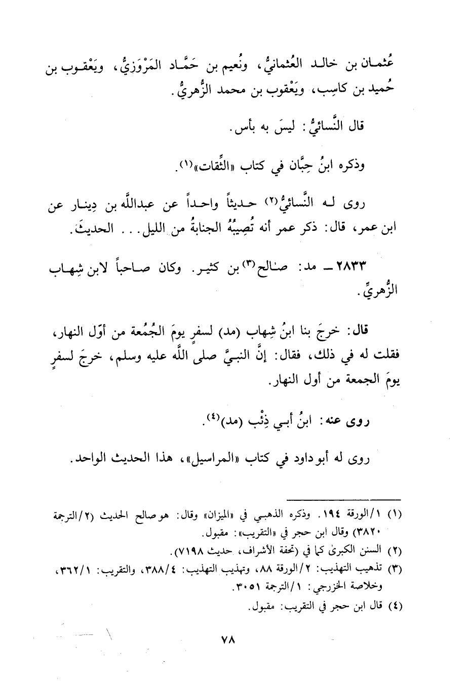 2833 - مد: صالح بن كثير (3) . وكان صاحباً لابن شهاب الزُّهْرِيّ.