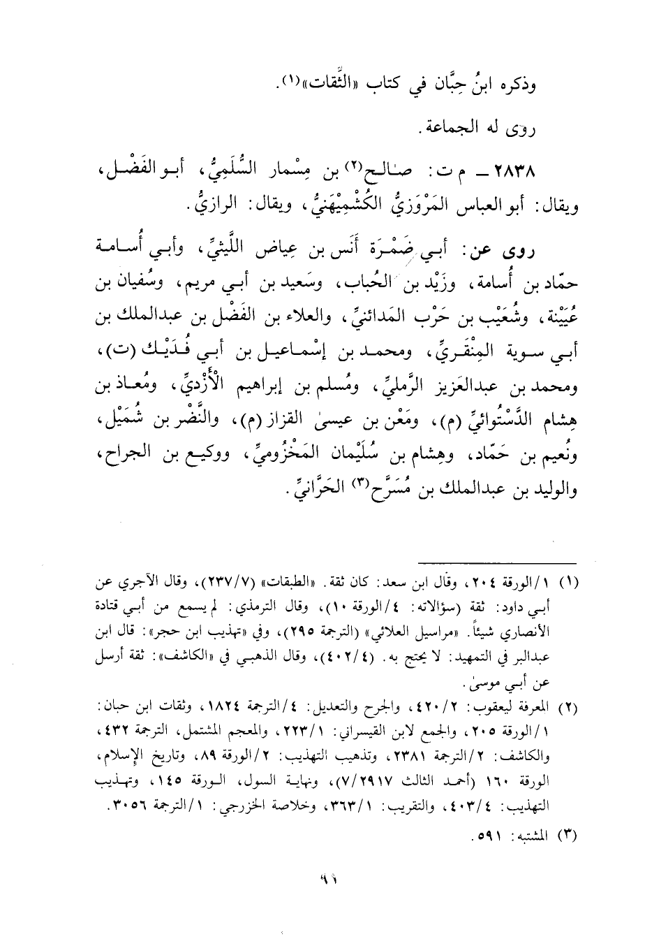 2838 - م ت: صالح بن مسمار السلمي (2) ، أبو الفضل، ويُقال: أبو العباس المروزي الكشميهني، ويُقال: الرازي.