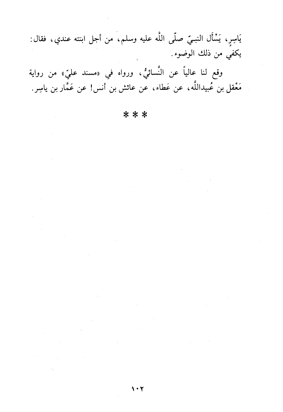 يَاسِرٍ، يَسْأَلُ النَّبِيَّ صَلَّى اللَّهُ عَلَيْهِ وسَلَّمَ، مِنْ أَجْلِ ابْنَتِهِ عِنْدِي، فَقَالَ: يَكْفِي مِن ذَلِكَ الْوُضُوءُ.