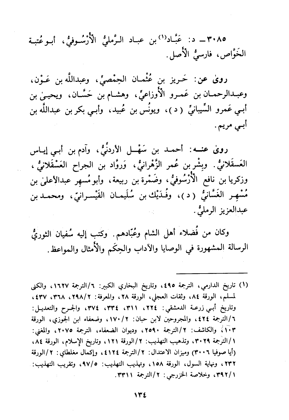3085 - د: عباد بن عباد الرملي الأرسوفي (1) ، أَبُو عتبة الخواص، فارسي الأصل.