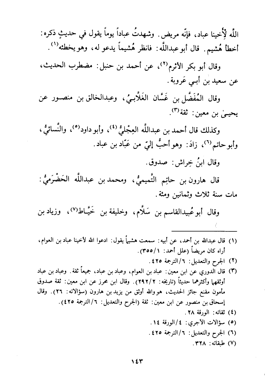 اللَّه لأخينا عباد، فَإِنَّهُ مريض. وشهدت عبادا يوما يَقُول فِي حَدِيث ذكره: أخطأ هشيم. قال أَبُو عَبْد اللَّهِ: فانظر هشيما يدعو لَهُ، وهُوَ يخطئه (1) .