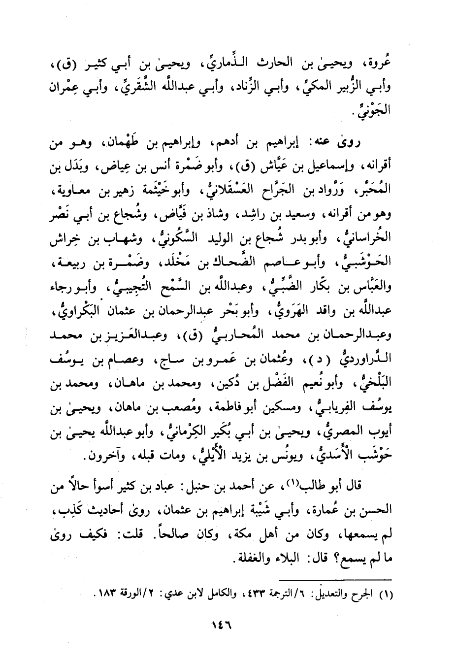 (1) الجرح والتعديل: 6 / الترجمة 433، والكامل لابن عدي: 2 / الورقة 183.