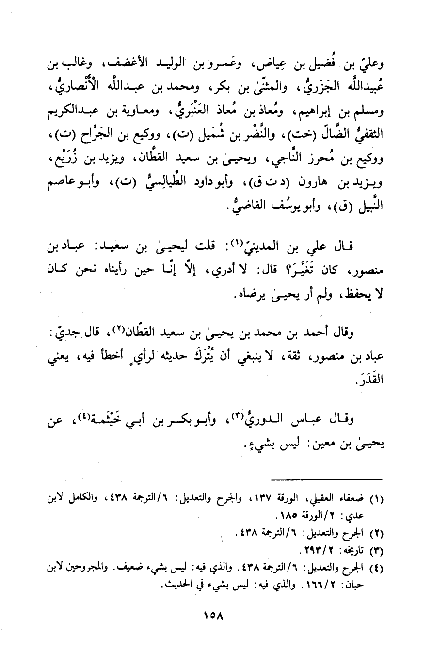 (4) الجرح والتعديل: 6 / الترجمة 438. والذي فيه: ليس بشيءٍ ضعيف. والمجروحين لابن حبان: 2 / 166. والذي فيه: ليس بشيءٍ في الحديث.