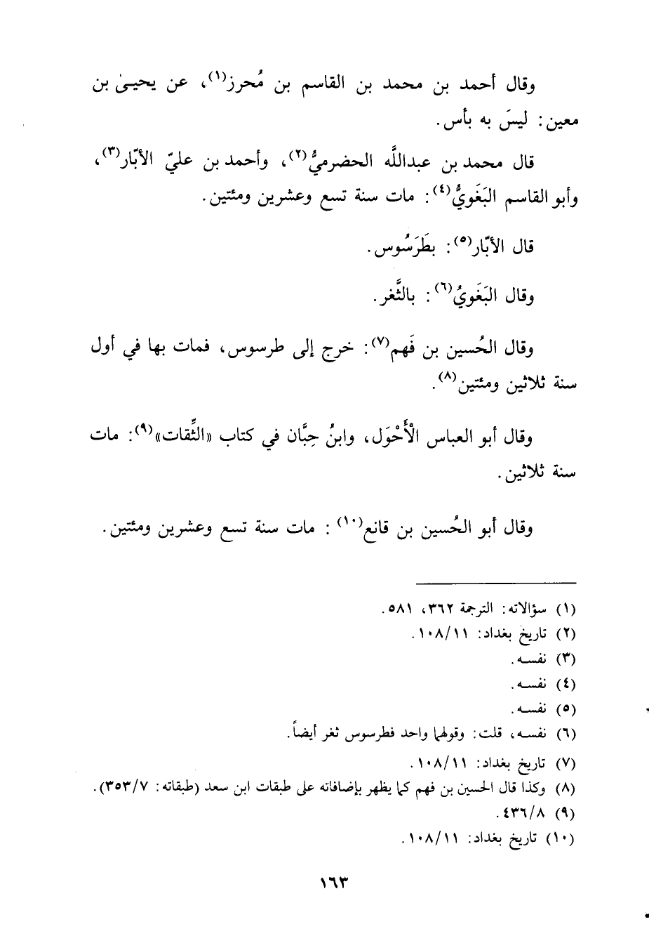 (8) وكذا قال الحسين بن فهم كما يظهر بإضافاته على طبقات ابن سعد (طبقاته: 7 / 353) .