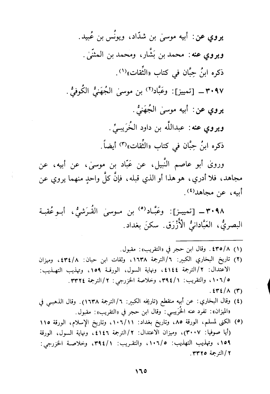 3098 - تمييز: وعباد بن موسى الْقُرَشِي (5) ، أَبُو عقبة البَصْرِيّ، العباداني الأزرق. سكن بغداد.