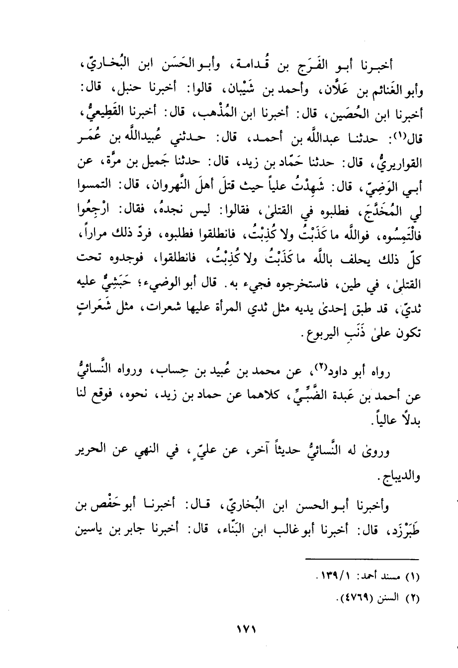رَوَاهُ أَبُو دَاوُدَ (2) ، عَنْ مُحَمَّدِ بْنِ عُبَيد بْن حساب، ورواه النَّسَائي عَنْ أَحْمَد بْن عبدة الضبي، كلاهما عَنْ حَمَّادِ بْنِ زَيْدٍ، نَحْوَهُ، فَوَقَعَ لَنَا بَدَلا عَالِيًا.