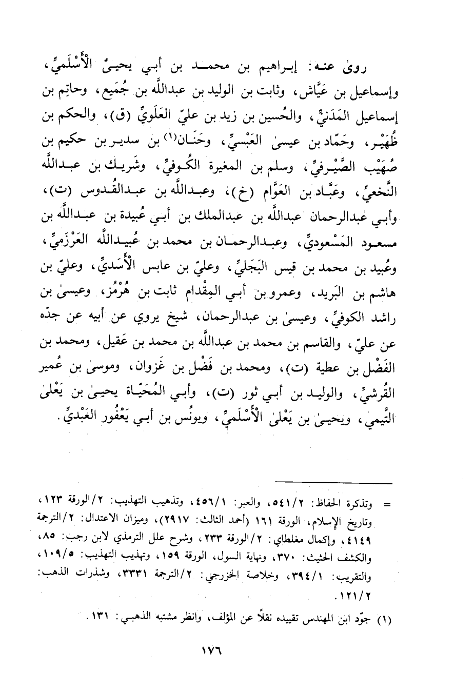= وتذكرة الحفاظ: 2 / 541، والعبر: 1 / 456، وتذهيب التهذيب: 2 / الورقة 123، وتاريخ الاسلام، الورقة 161 (أحمد الثالث: 2917) ، وميزان الاعتدال: 2 / الترجمة 4149، وإكمال مغلطاي: 2 / الورقة 233، وشرح علل التِّرْمِذِيّ لابن رجب: 85، والكشف الحثيث: 370، ونهاية السول، الورقة 159، وتهذيب التهذيب: 5 / 109، والتقريب: 1 / 394، وخلاصة الخزرجي: 2 / الترجمة 3331، وشذرات الذهب: 2 / 121.