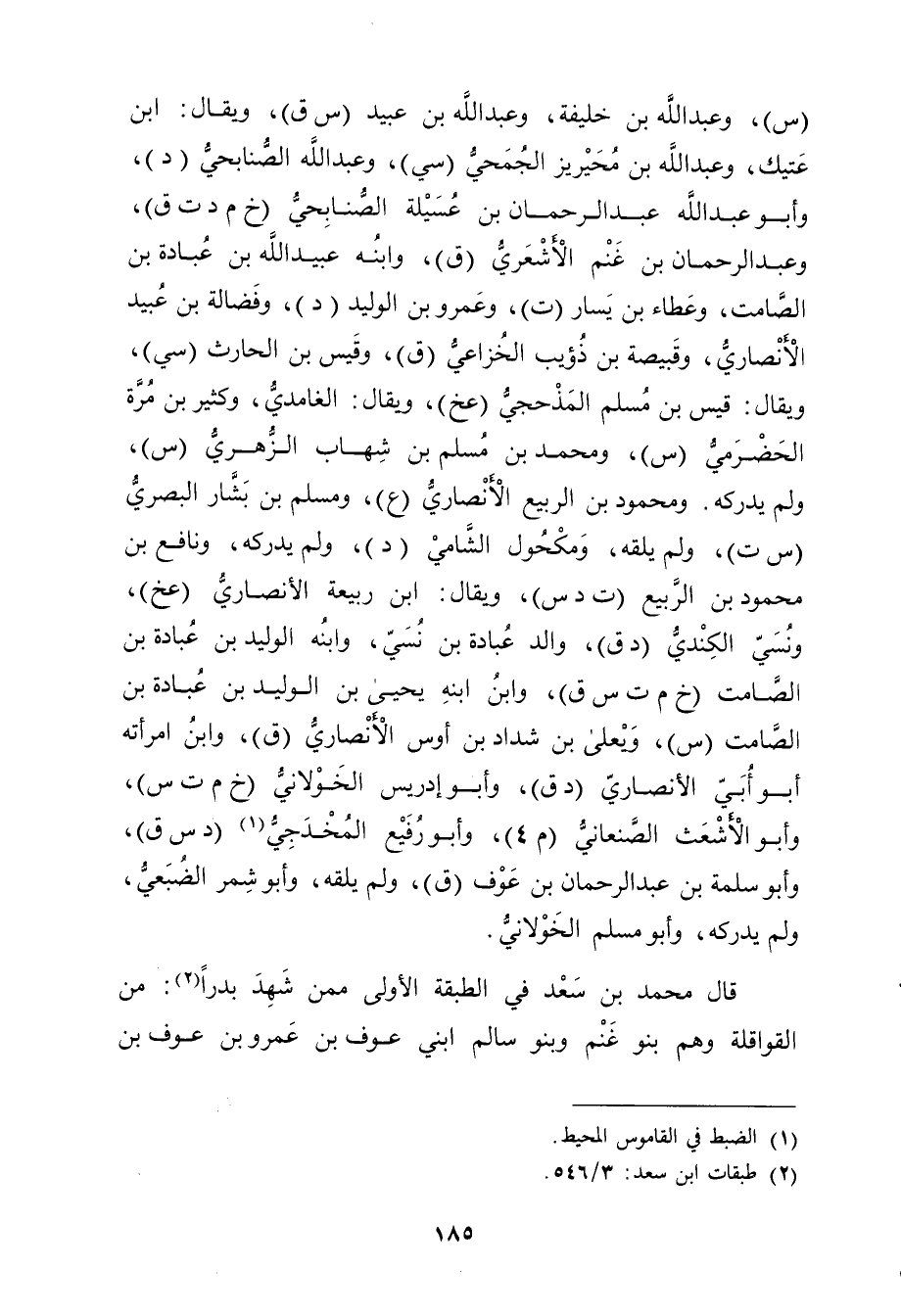 قال مُحَمَّد بْن سعد في الطبقة الأولى مِمَّن شهد بدرا (2) : من القواقلة وهم بنو غنم وبنو سالم ابني عوف بْن عَمْرو بْن عوف بْن