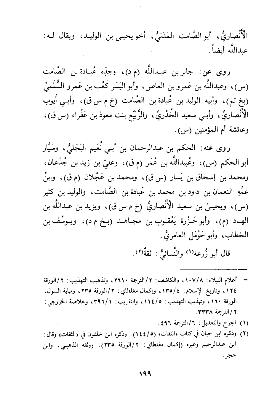 (2) وذكره ابنُ حِبَّان في كتاب "الثقات" (5 / 144) ، وذَكَره ابن خلفون في "الثقات" وَقَال: ابن عَبد الرحيم وغيره (إكمال مغلطاي: 2 / الورقة 235) . ووثقه الذهبي، وابن حجر.