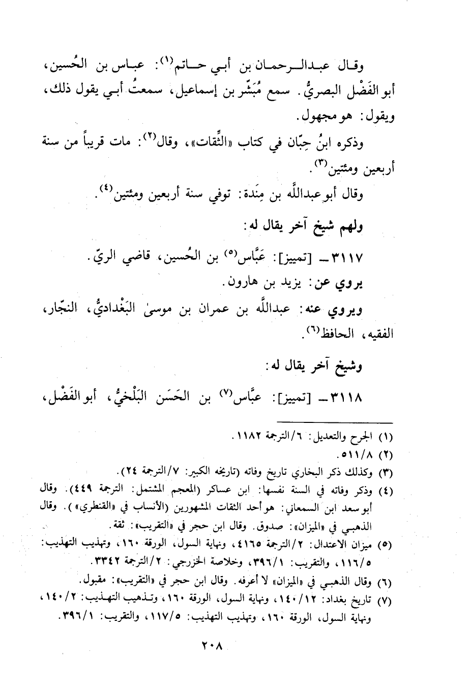 3117 - تمييز: عَبَّاس بن الْحُسَيْن (5) ، قَاضِي الري.