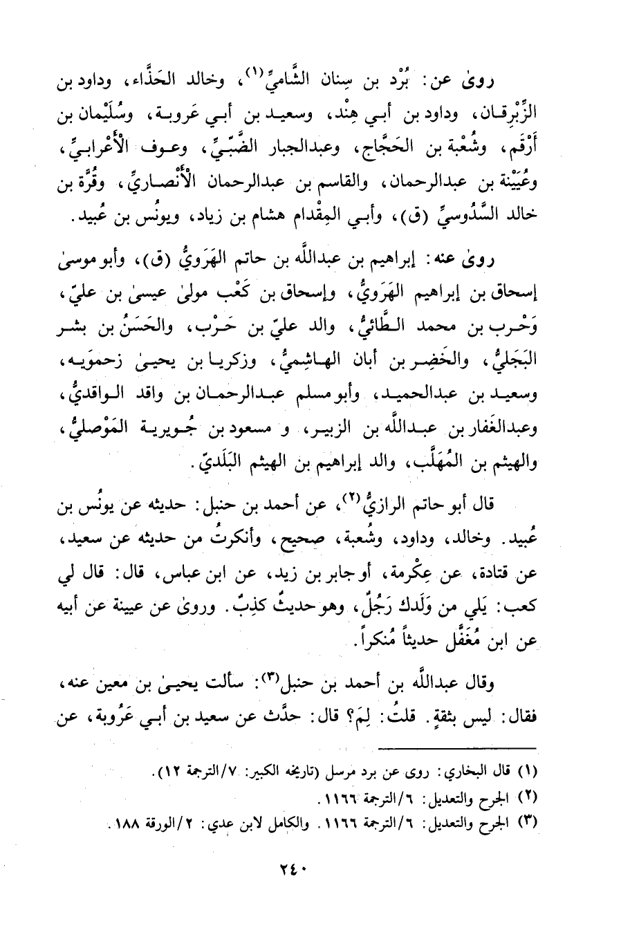 (3) الجرح والتعديل: 6 / الترجمة 1166. والكامل لابن عدي: 2 / الورقة 188.