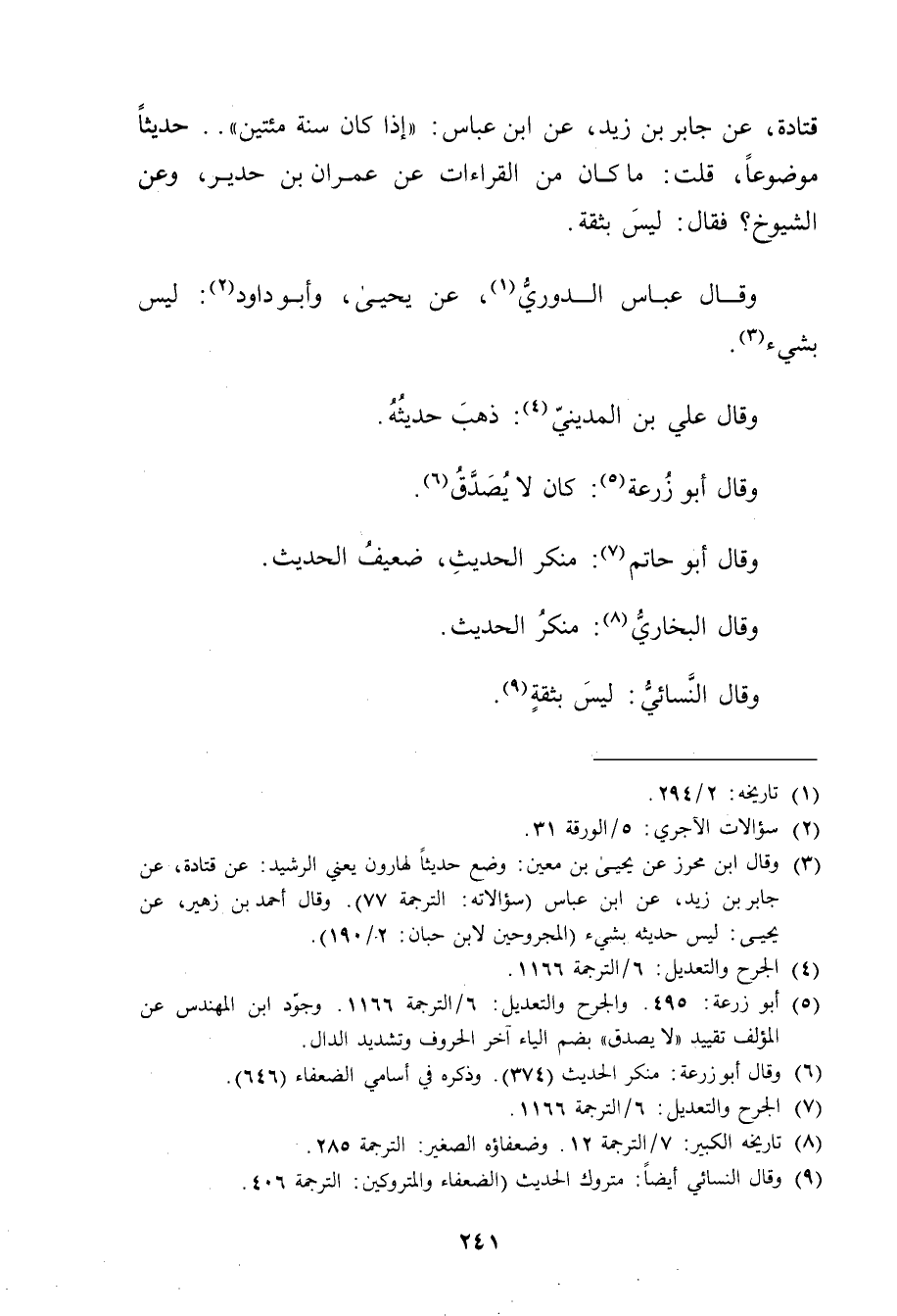 (9) وَقَال النَّسَائي أيضا: متروك الحديث (الضعفاء والمتروكين: الترجمة 406.