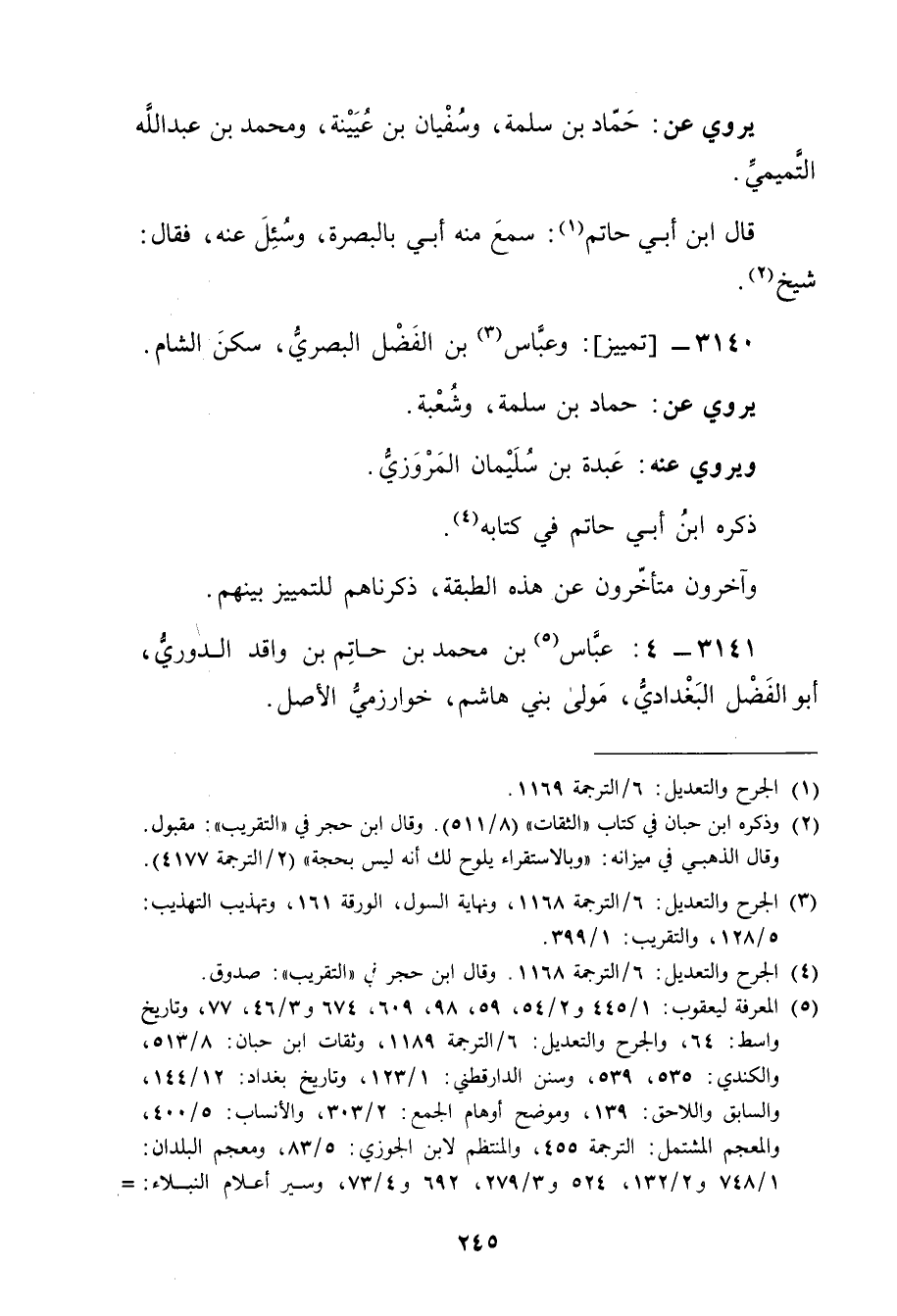 3141 - 4: عَبَّاس بن مُحَمَّد بن حاتم بن واقد الدوري (5) ، أَبُو الفضل البغدادي، مولى بَنِي هاشم، خوارزمي الاصل.