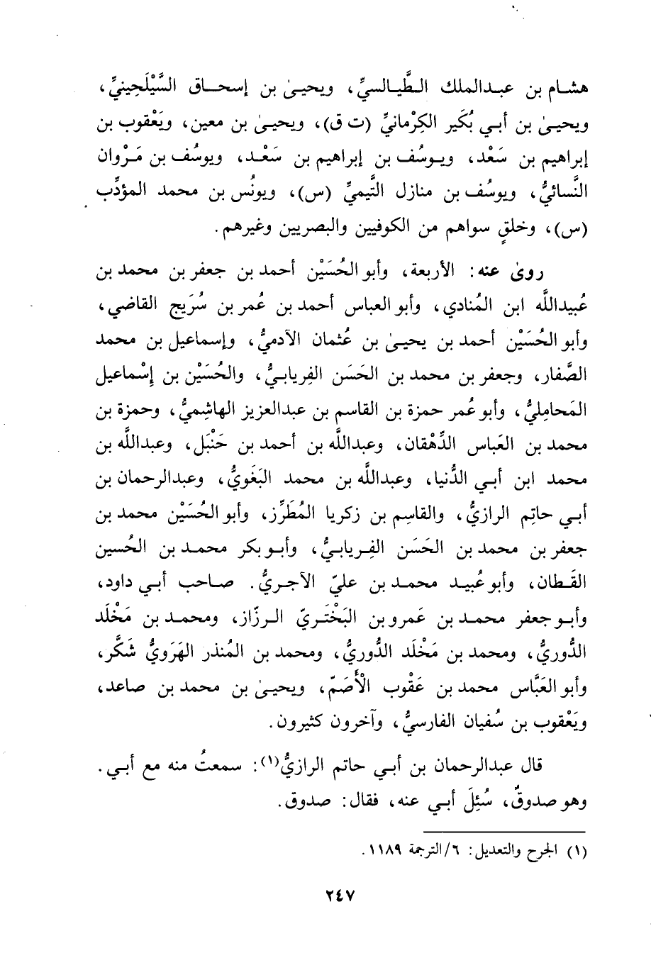 (1) الجرح والتعديل: 6 / الترجمة 1189.
