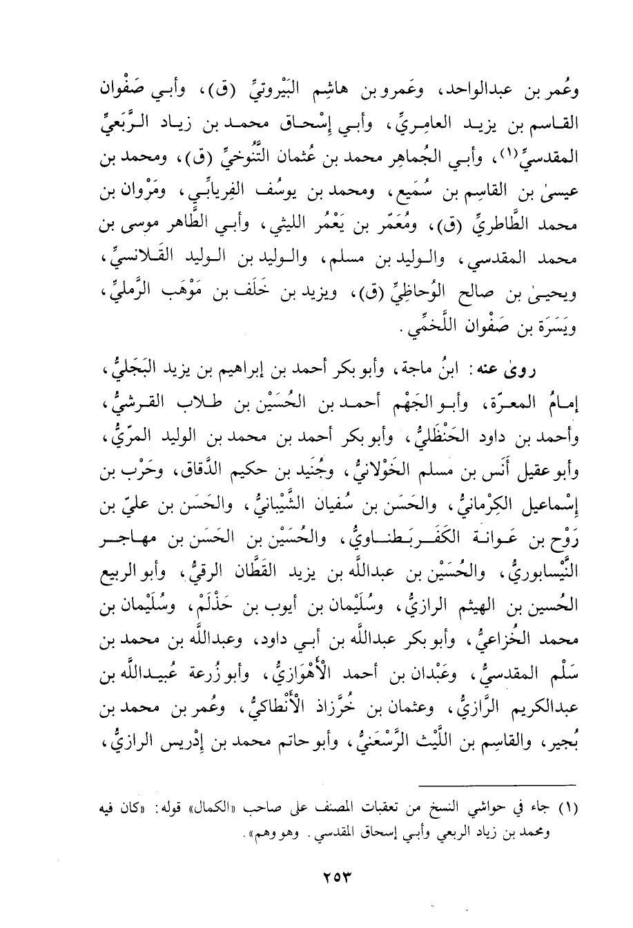 (1) جاء في حواشي النسخ من تعقبات المصنف على صاحب "الكمال" قوله: كان فيه ومحمد بن زيد الربعي وأبي إسحاق المقدسي. وهو وهم".