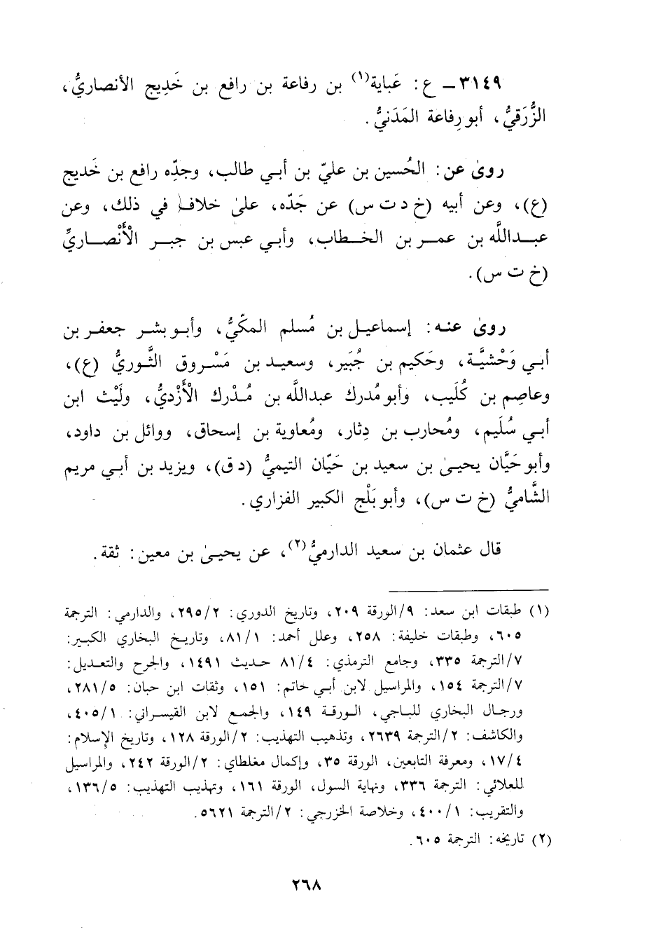 3149 - ع: عباية بن رفاعة بن رافع بن خديج الأَنْصارِيّ (1) ، الزرقي، أَبُو رفاعة المدني.