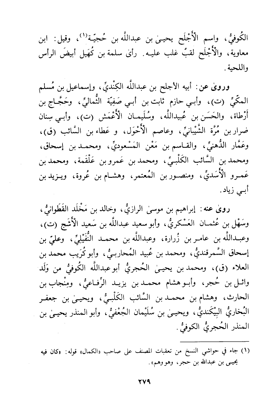 (1) جاء في حواشي النسخ من تعقبات المصنف على صاحب "الكمال" قوله: كان فيه يحيى بْن عَبد اللَّهِ بْن حجر، وهو وهم".