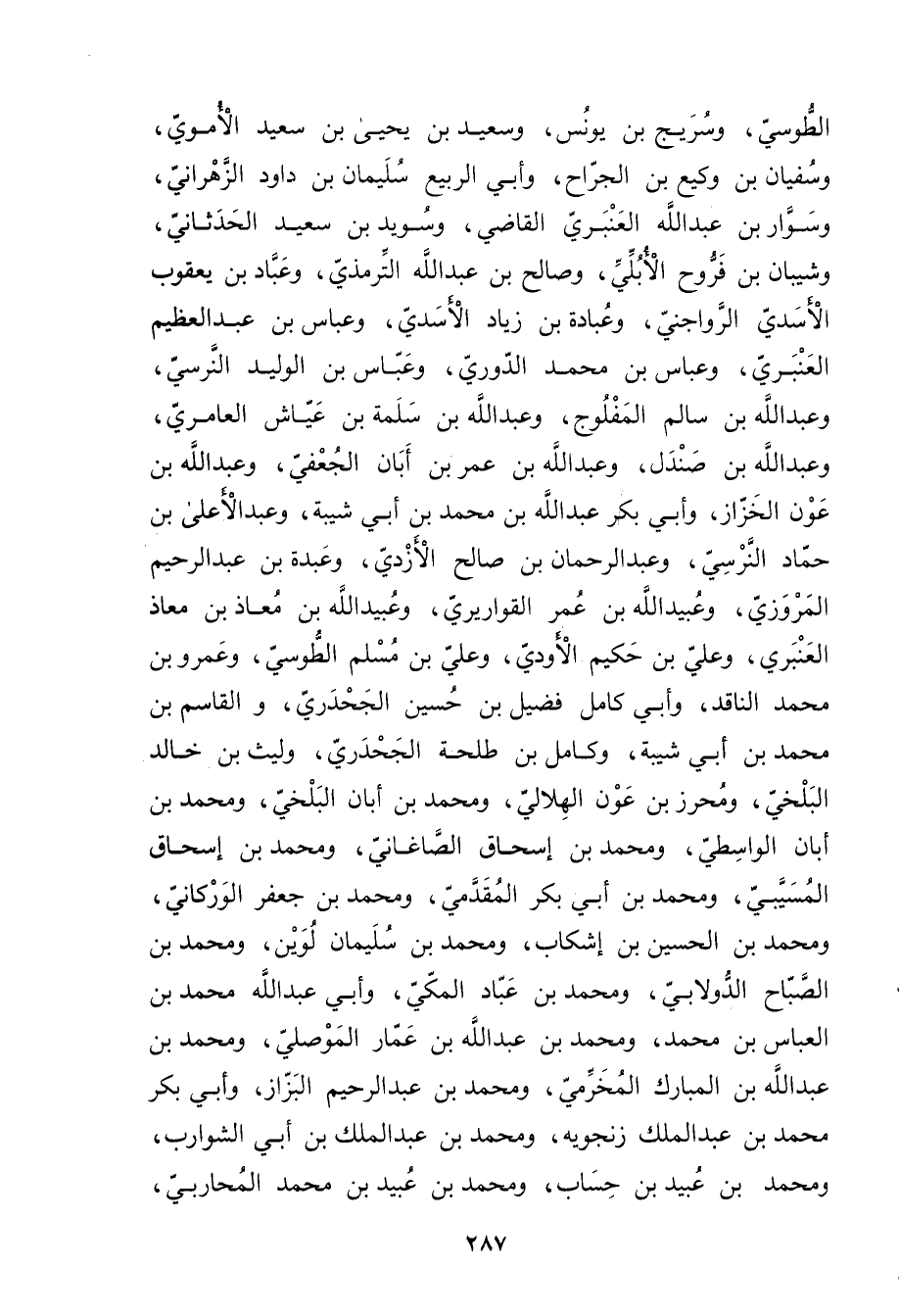 الطوسي، وسريج بْن يُونُس، وسَعِيد بْن يحيى بْن سَعِيد الأُمَوِي، وسفيان بْن وكيع بْن الجراح، وأبي الربيع سُلَيْمان بْن داود الزهراني، وسوار بْن عَبد اللَّهِ العنبري الْقَاضِي، وسويد بْن سَعِيد الحدثاني، وشيبان بن فروح الأبلي، وصالح بْن عَبد اللَّهِ التِّرْمِذِيّ، وعباد بْن يعقوب الأسدي الرواجني، وعبادة بْن زِيَاد الأسدي، وعباس بْن عَبْد العظيم العنبري، وعباس بْن مُحَمَّد الدوري، وعباس بْن الْوَلِيد النرسي، وعبد اللَّه بْن سالم المفلوج، وعبد اللَّه بْن سلمة بْن عياش العامري، وعبد اللَّه بْن صندل، وعبد اللَّه بْن عُمَر بْن أبان الجعفي، وعَبْد اللَّه بْن عون الخزاز، وأبي بَكْر عَبد اللَّهِ بْن مُحَمَّد بْن أَبي شَيْبَة، وعبد الأعلى بن حماد النرسي، وعبد الرحمن بْن صَالِح الأزدي، وعبدة بْن عَبد الرحيم المروزي، وعُبَيد اللَّه بْن عُمَر القواريري، وعُبَيد الله بْن معاذ بْن معاذ العنبري، وعلي بْن حكيم الأَودِيّ، وعلي بن مسلم الطوسي، وعُمَر وبن مُحَمَّد الناقد، وأبي كامل فضيل بْن حسين الجحدري، والقاسم بْن مُحَمَّد بْن أَبي شَيْبَة، وكامل بْن طَلْحَة الجحدري، وليث بْن خَالِد البلخي، ومحرز بْن عون الهلالي، ومُحَمَّد بْن أبان البلخي، ومحمد بْن أبان الواسطي، ومحمد بْن إسحاق الصاغاني، ومحمد بْن إِسْحَاق المُسَيَّبي، ومُحَمَّد بْن أَبي بكر المقدمي، ومُحَمَّد بن جعفر الوركاني، ومُحَمَّد بْن الْحُسَيْن بْن إشكاب، ومُحَمَّد بْن سُلَيْمان لوين، ومحمد بْن الصباح الدولابي، ومحمد بْن عباد الْمَكِّي، وأبي عَبد اللَّهِ محمد بْن العباس بْن مُحَمَّد، ومُحَمَّد بْن عَبد اللَّهِ بْن عمار الموصلي، ومحمد بْن عَبد اللَّهِ بْن المبارك المخرمي، ومحمد بْن عَبد الرحيم البزاز، وأبي بَكْر مُحَمَّد بْن عَبد المَلِك زنجويه، ومُحَمَّد بْن عَبد المَلِك بْن أَبي الشوارب، ومحمد بْن عُبَيد بْن حساب، ومحمد بْن عُبَيد بْن مُحَمَّد المحاربي،