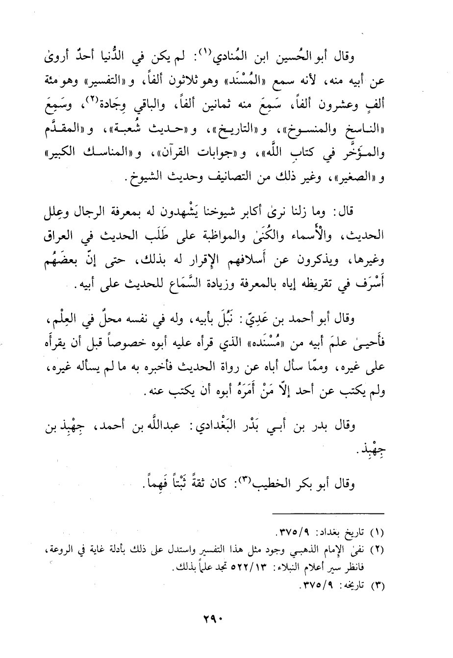 (1) تاريخ بغداد: 9 / 375.