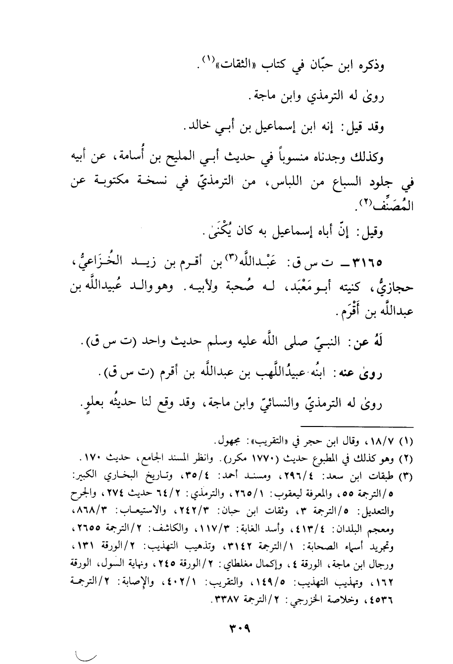 3165 - ت س ق: عَبد اللَّهِ بن أقرم بن زَيْد الخزاعي (3) ، حجازي، كنيته أَبُو معبد، لهُ صُحبَةٌ ولأبيه. وهُوَ والد عُبَيد اللَّه بْن عَبد اللَّهِ بْن أقرم.