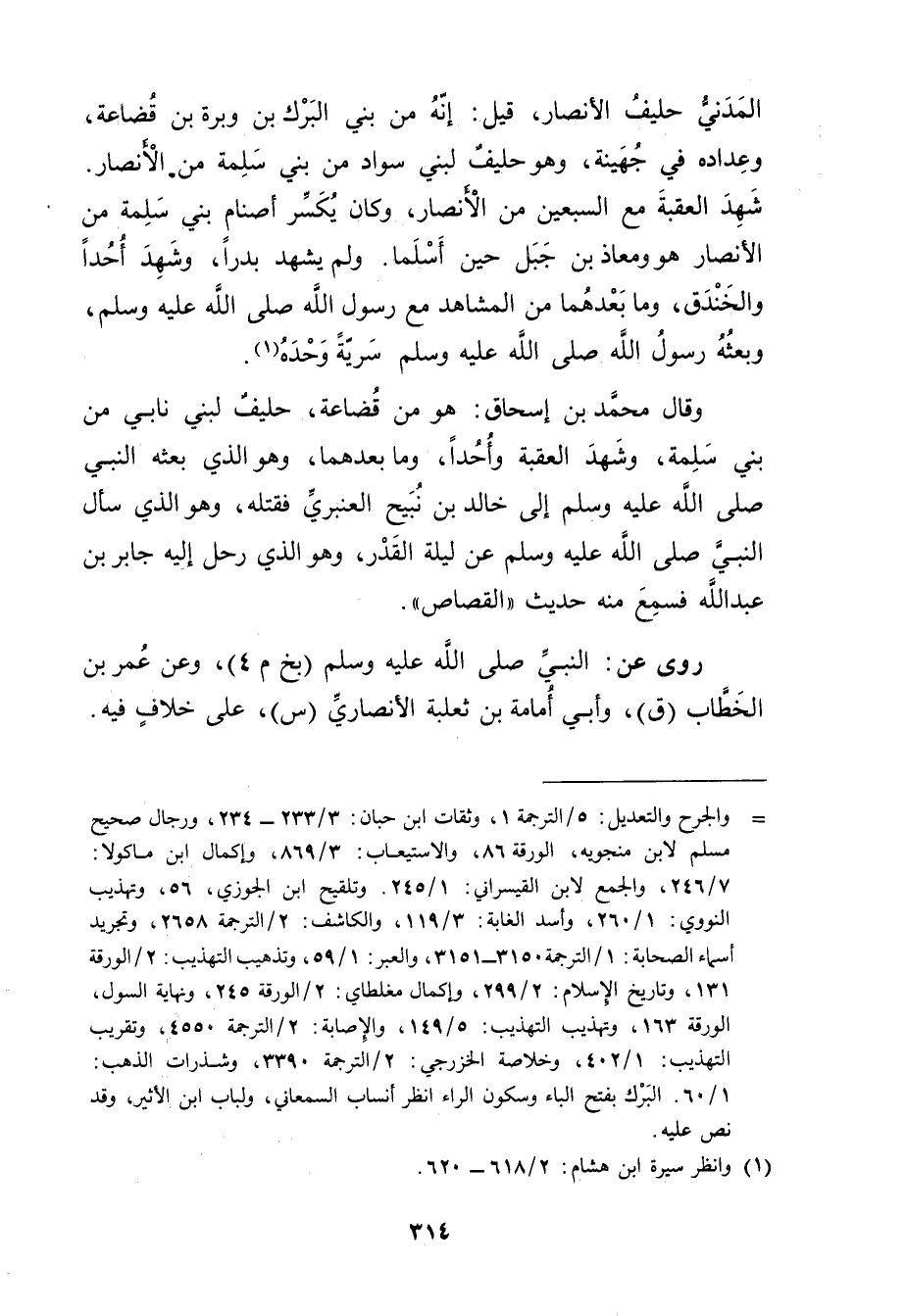 = والجرح والتعديل: 5 / الترجمة 1، وثقات ابن حبان: 3 / 233 - 234، ورجال صحيح مسلم لابن منجوية، الورقة 86، والاستيعاب: 3 / 869، وإكمال ابن ماكولا: 7 / 246، والجمع لابن القيسراني: 1 / 245. وتلقيح ابن الجوزي، 56، وتهذيب النووي: 1 / 260، وأسد الغابة: 3 / 119، والكاشف: 2 / الترجمة 2658، وتجريد أسماء الصحابة: 1 / الترجمة 3150 - 3151، والعبر: 1 / 59، وتذهيب التهذيب: 2 / الورقة 131، وتاريخ الاسلام: 2 / 299، وإكمال مغلطاي: 2 / الورقة 245، ونهاية السول، الورقة 163، وتهذيب التهذيب: 5 / 149، والاصابة: 2 / الترجمة 4550، وتقريب التهذيب: 1 / 402، وخلاصة الخزرجي: 2 / الترجمة 3390، وشذرات الذهب: 1 / 60. البرك بفتح الباء وسكون انظر أنساب السمعاني، ولباب ابن الاثير، وقد نص عليه.