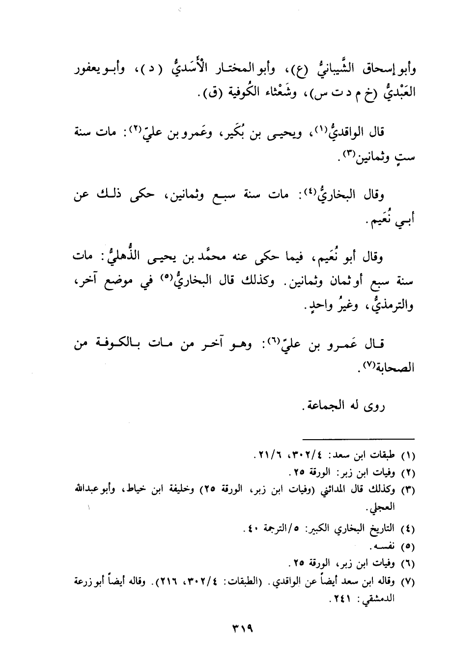 (7) وَقَاله ابن سعد أيضا الواقدي. (الطبقات: 4 / 302، 216) .