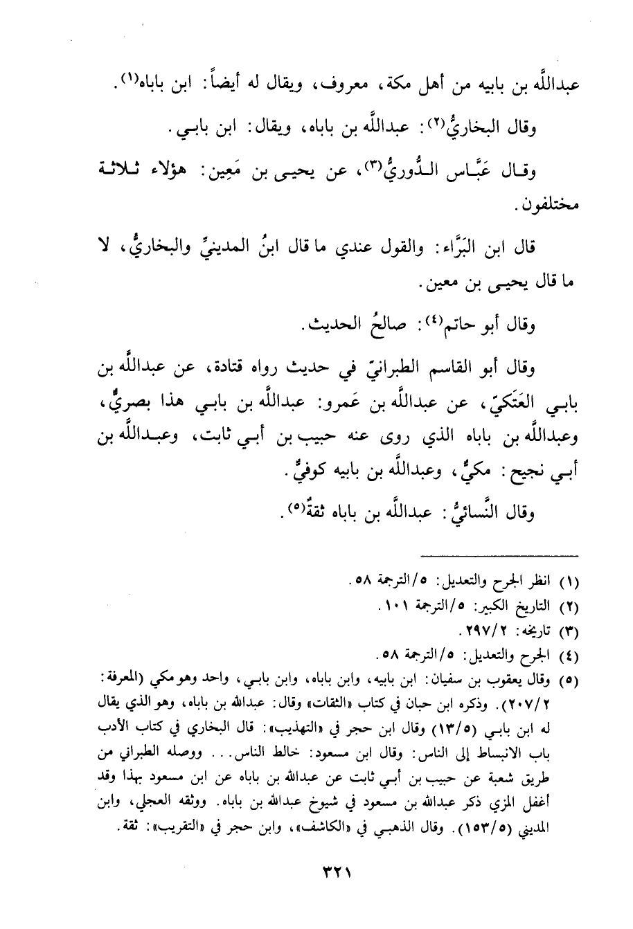 وَقَال النَّسَائي: عَبد اللَّهِ بْن باباه ثقة (5) .