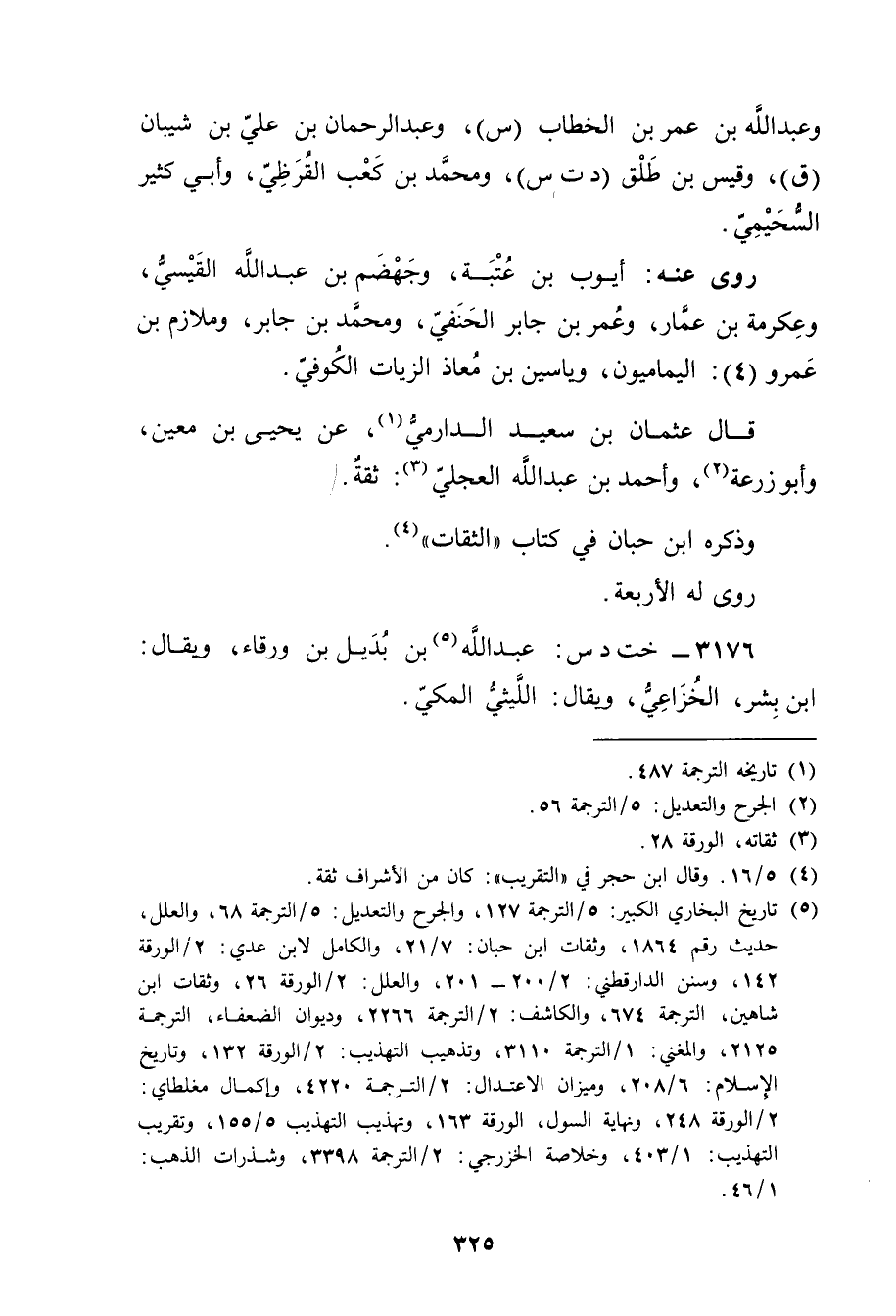 3176 - خت د س: عَبد اللَّهِ بن بديل بن ورقاء (5) ، ويُقال: ابْن بشر، الخزاعي، ويُقال: الليثي المكي.