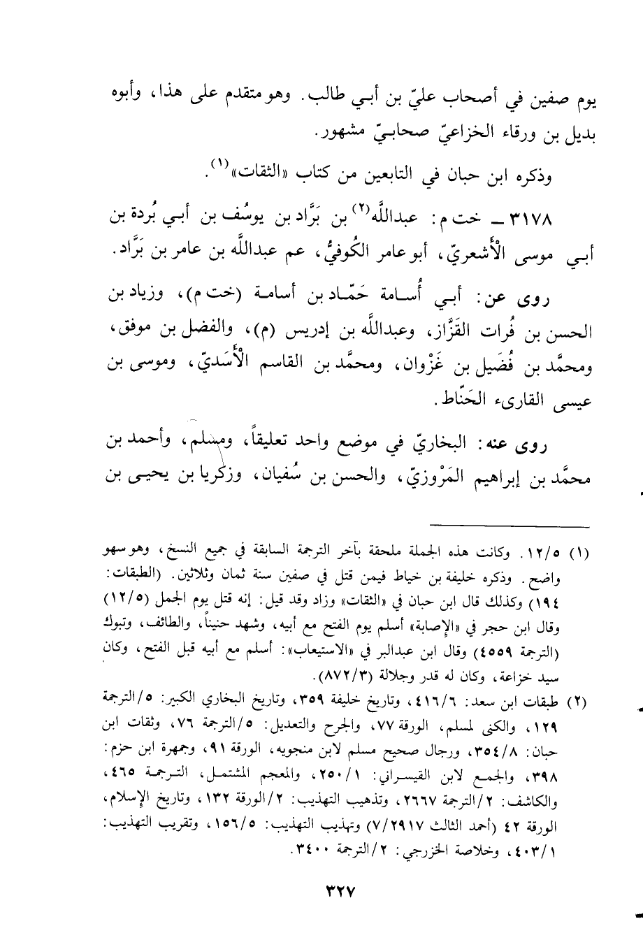 3178 - خت م: عَبد اللَّهِ بن براد بن يُوسُف بْن أَبي بردة بْن أَبي موسى الأشعري، أَبُو عَامِر الكوفي (2) ، عم عَبد اللَّهِ بْن عَامِر بْن براد.