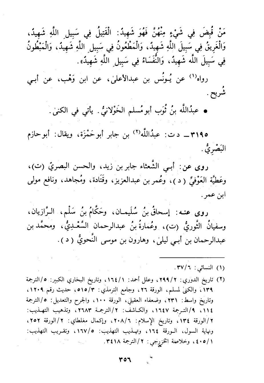3195 - د ت: عَبد اللَّهِ بن جَابِر أَبُو حمزة (2) ، ويُقال: أَبُو حازم البَصْرِيّ.