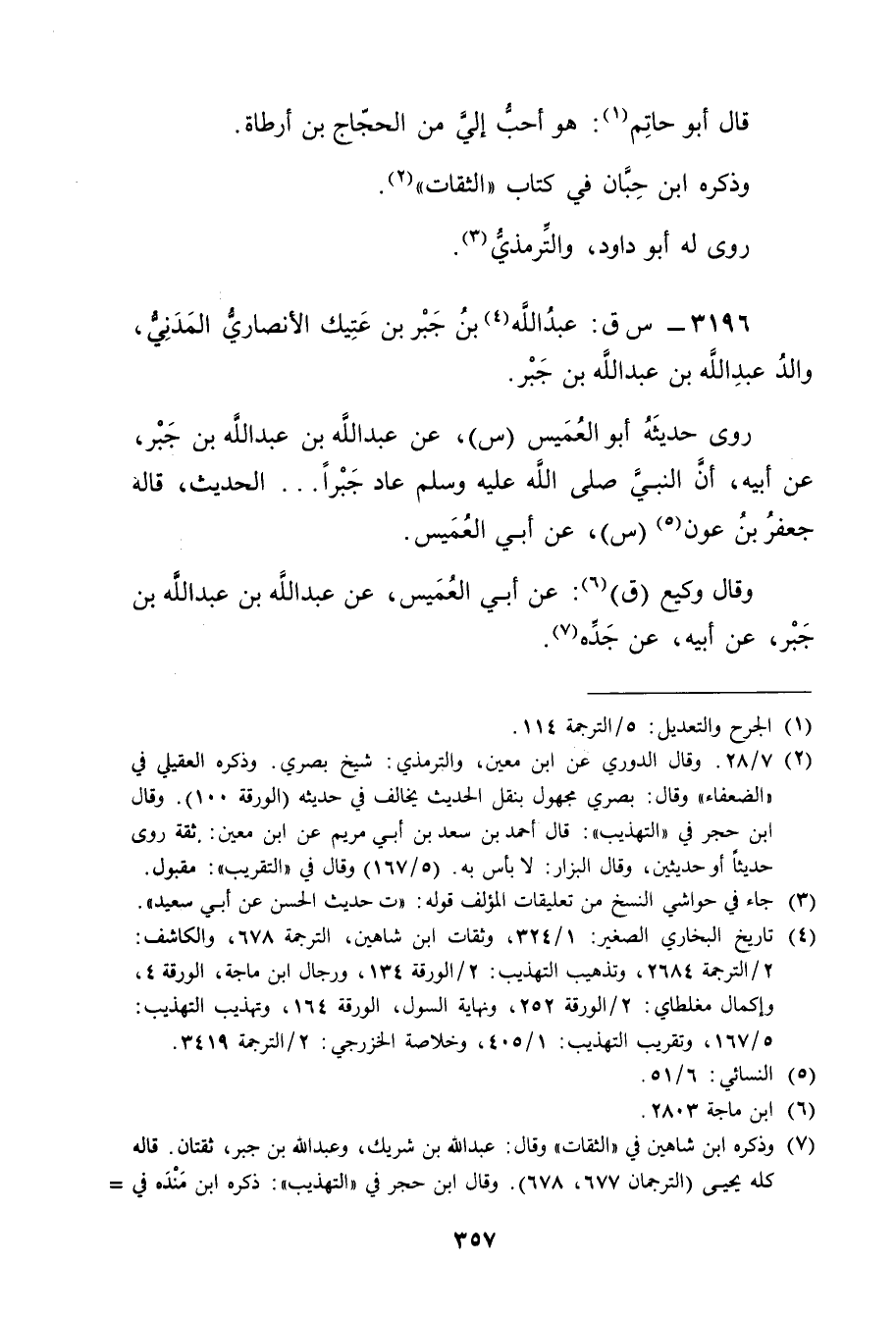 (7) وذكره ابن شاهين في "الثقات" وَقَال: عَبد الله بن شَرِيك، وعبد الله بن جبر، ثقتان. قاله كله يحيى (الترجمان 677، 678) . وَقَال ابن حجر في "التهذيب": ذكره ابن منذه في =