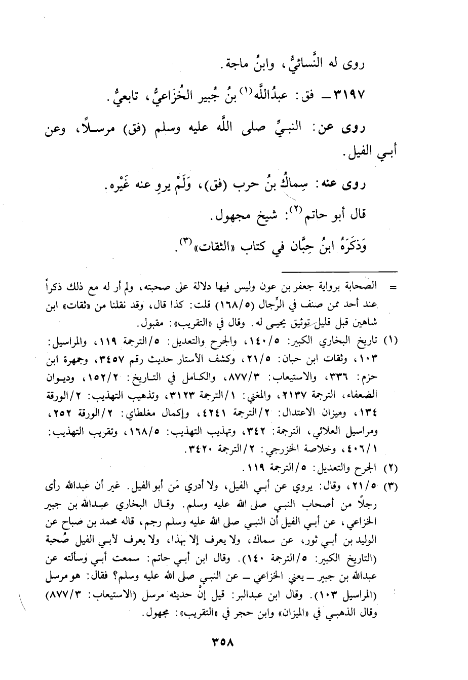 3197 - فق: عَبد اللَّهِ بن جُبَيْر الخزاعي (1) ، تابعي.