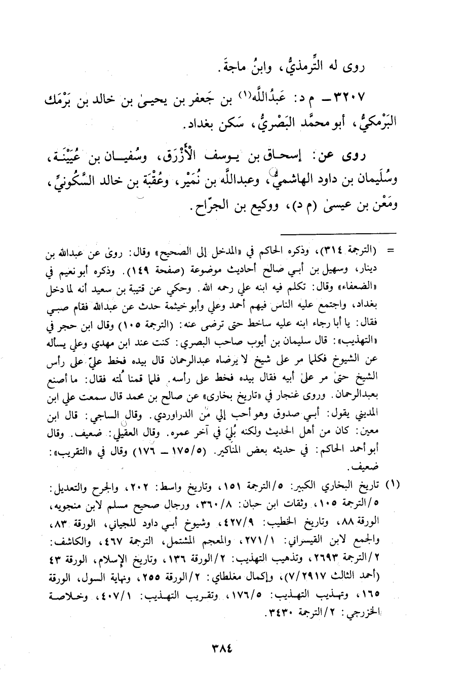 3207 - م د: عَبد اللَّهِ بن جَعْفَر بن يَحْيَى بن خَالِد بن برمك البرمكي (1) ، أَبُو مُحَمَّد البَصْرِيّ، سكن بغداد.