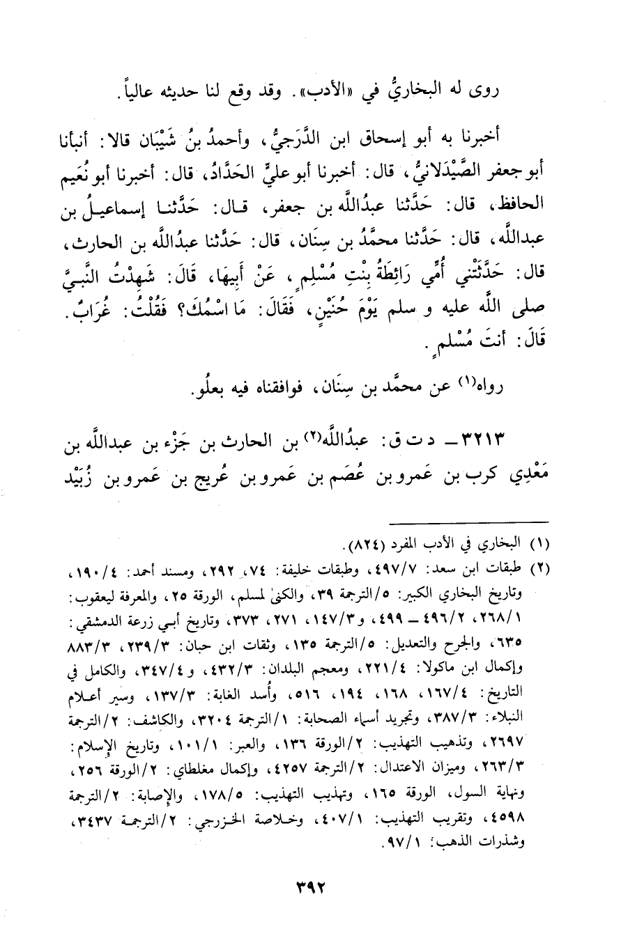 3213 - د ت ق: عَبد اللَّهِ بن الْحَارِث بن جزء بن عَبد اللَّهِ بن مَعْدِي كَرِب بن عَمْرو بن عصم بن عَمْرو بن عريج بن عَمْرو بن زبيد (2)