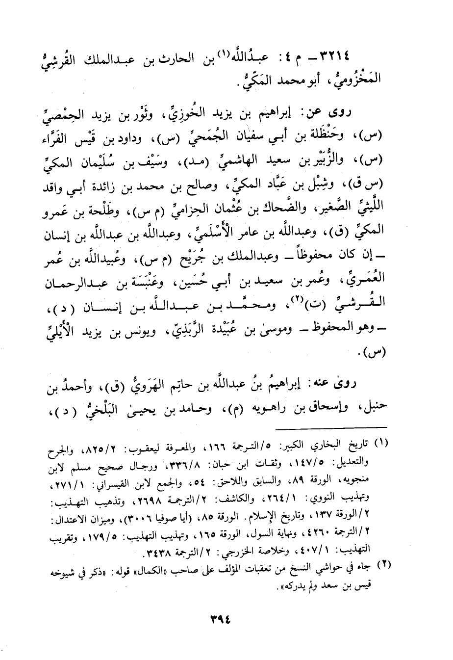3214 - م 4: عَبد اللَّهِ بن الْحَارِث بن عَبد المَلِك الْقُرَشِي المخزومي (1) ، أَبُو مُحَمَّد الْمَكِّي.