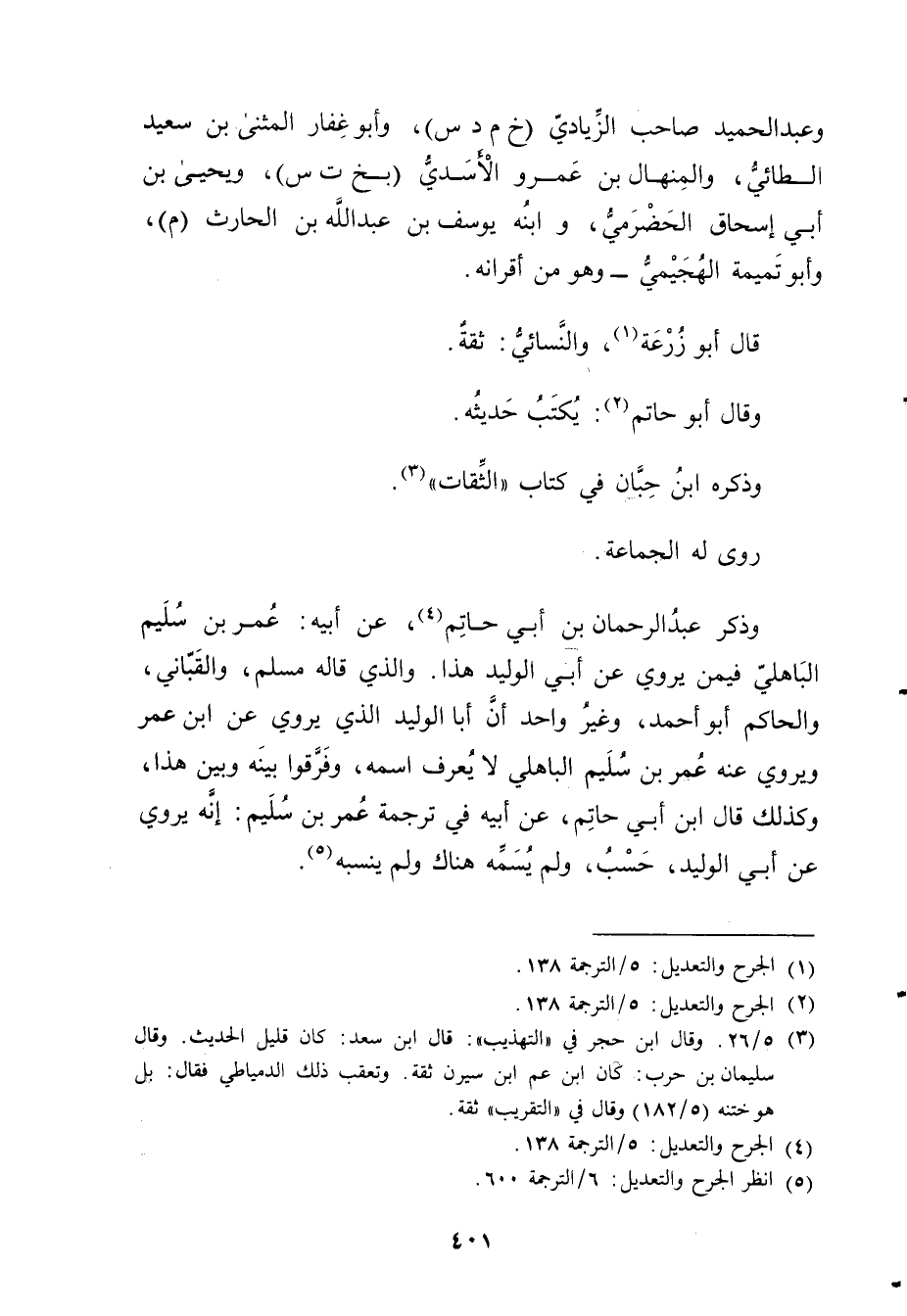 (1) الجرح والتعديل: 5 / الترجمة 138.