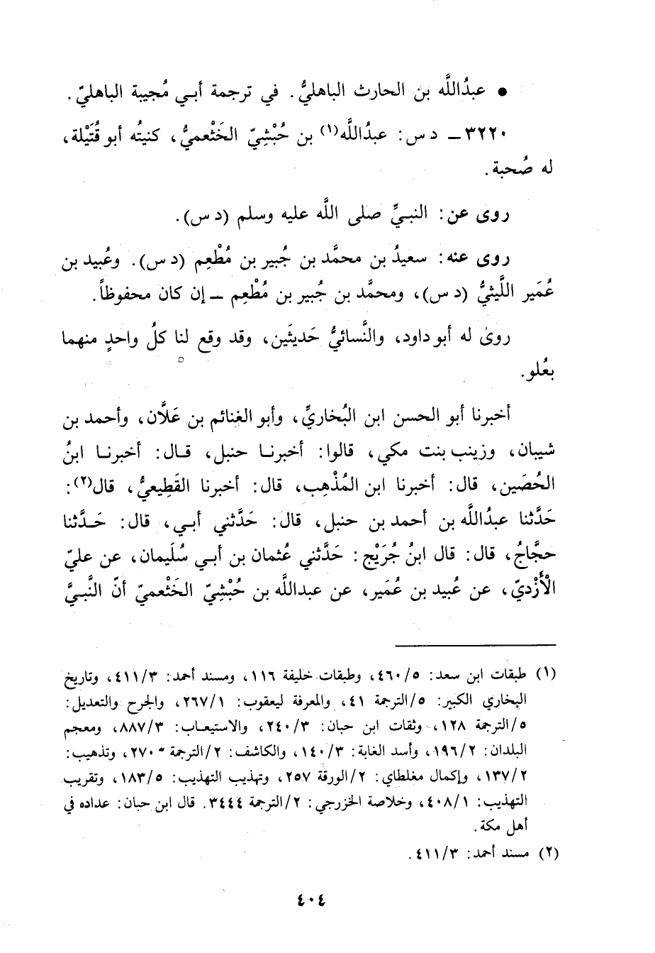 3220 - د س: عَبد اللَّهِ بن حبشي الخثعمي (1) ، كنية أَبُو قتيلة، لَهُ صحبة.
