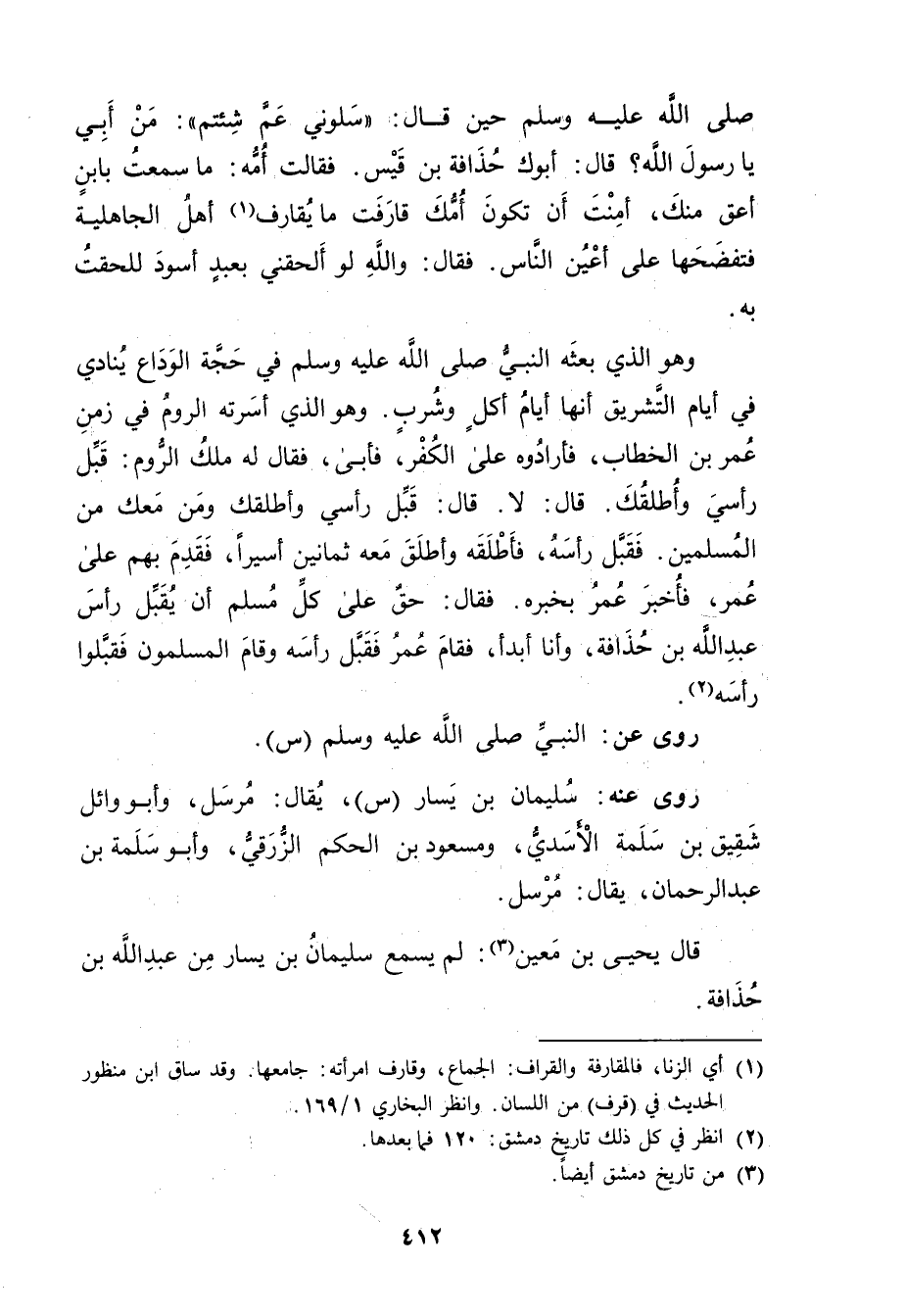 قال يحيى بْن مَعِين (3) : لم يسمع سُلَيْمان بْن يسار من عَبد الله بن حذافة.